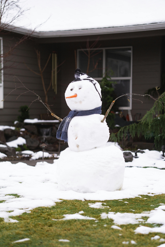 Just beware of ice or snow falling off rooftops — for both the snowman’s safety and yours!